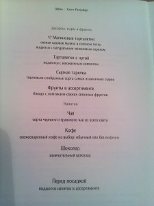 После того, как самолет взлетел и набрал высоту, пассажирам бизнес класса предлагают вкусно поесть, выбрав блюда по меню, которое предлагают на русском языке в том числе. А сделав заказ, можно в ожидании обеда выпить чего-нибудь крепкого для аппетита 8)). Наливают на борту Эмирейтс щедро и без ограничений. Алкоголь в бизнес классе Эмирейтс можно выбрать по винной карте, которая включает аперитивы (типа кампари, вермут), пиво, крепкие алкогольные напитки (типа виски, коньяк, водка, ром, джин), а также различные коктейли, ликеры и вина высокого качества.