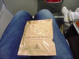 В каждом кресле находится набор для спокойного сна носки и повязка для глаз. Сняв ботинки и надев предложенные носки можно дать отдых ногам на время всего перелета, передвигаясь по самолету без обуви.